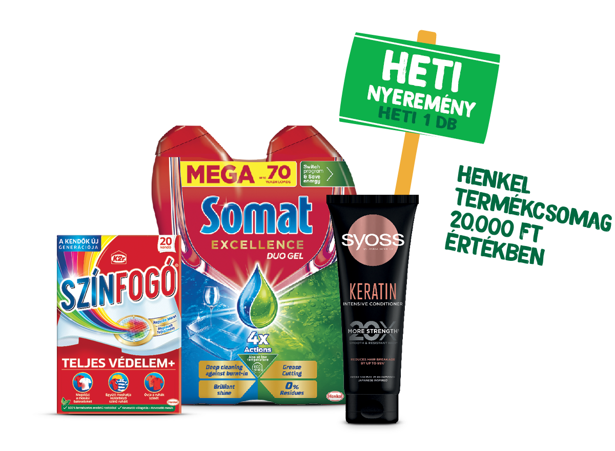 A promócióval, nyereményekkel, technikai problémákkal kapcsolatban keresd ügyfélszolgálatunkat a henkelnyeremeny@greenmango.hu e-mail címen. Az ügyfélszolgálat kizárólag a nyereményjátékkal kapcsolatban nyújt felvilágosítást.